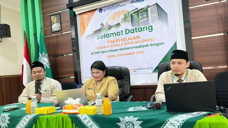 ​Sragen, 3 November 2025 - Dalam upaya berkelanjutan untuk menjamin mutu pendidikan dan akuntabilitas kepemimpinan, SMP Darul Ihsan Muhammadiyah Sragen (SMP DIMSA) telah sukses menyelenggarakan Penilaian Kinerja Kepala Sekolah (PKKS) pada hari Senin, 3 November 2025. Kegiatan penting ini berlangsung khidmat di Ruang Meeting SMP DIMSA dan menjadi agenda tahunan untuk memotret capaian dan kepemimpinan sekolah berbasis pesantren.