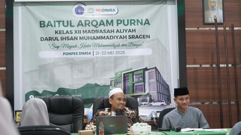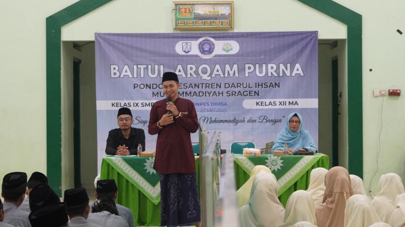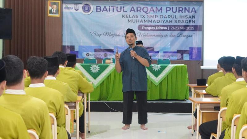 Sragen - Pondok Pesantren Darul Ihsan Muhammadiyah Sragen (DIMSA) kembali menggelar kegiatan Baitul Arqom bagi santri kelas akhir SMP dan MA sebagai bagian dari proses pembentukan karakter serta syarat kelulusan. Kegiatan ini dilaksanakan selama tiga hari, Rabu hingga Jumat, 21–23 Mei 2025, bertempat di Aula Utama dan Ruang Meeting Ponpes DIMSA.